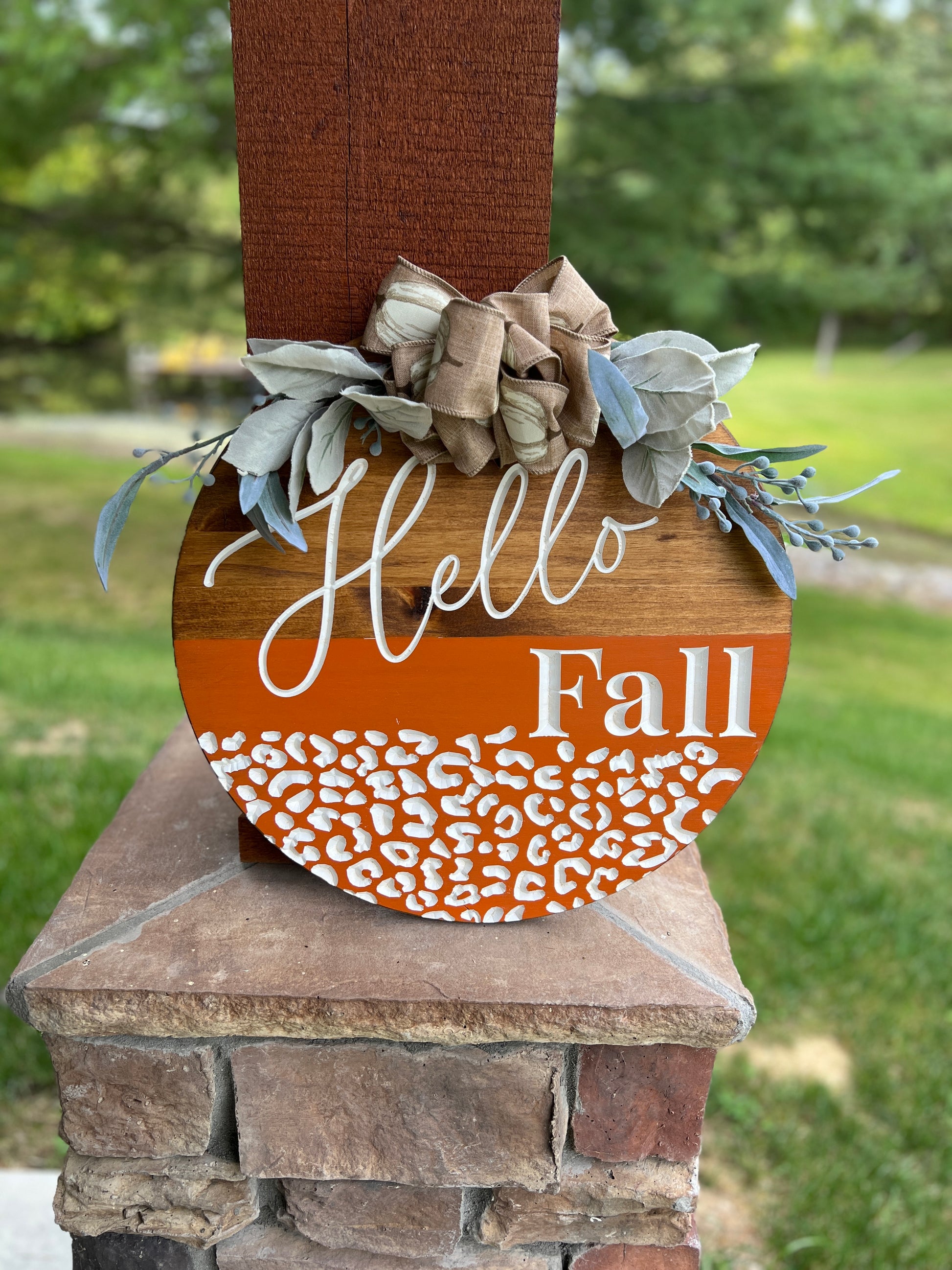 Welcome the changing of the seasons with our Doorhanger! Made of sturdy wood and adorned with a charming bow, this doorhanger will add a touch of warmth and style to any entryway. Perfect for greeting guests and neighbors with a playful and inviting tone.
